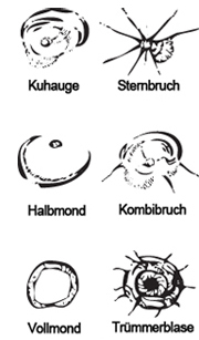 Um im Falle eines Steinschlages, das Eindringen von Wasser und Schmutz zu verhindern, empfehlen wir, die Stelle mit einem Steinschlagpflaster (bei uns kostenlos erhältlich) oder im Notfall mit einem Tixo abzudecken. Desto weniger Verunreinigungen in den Steinschlag gelangen, umso "sauberer" können wir diesen reparieren.